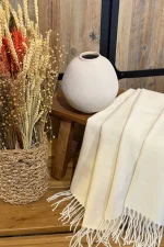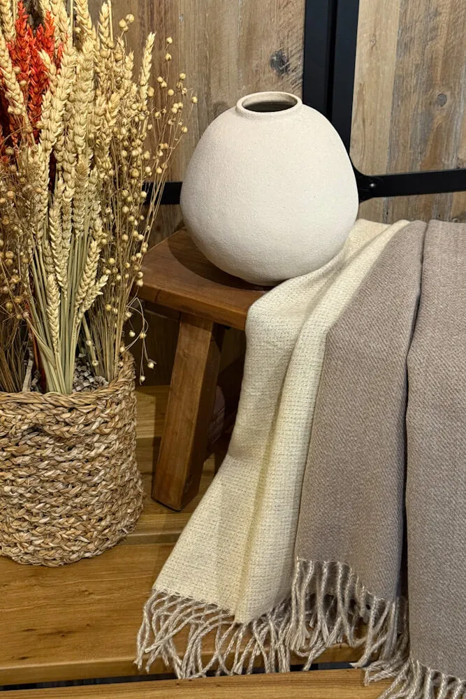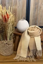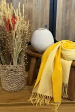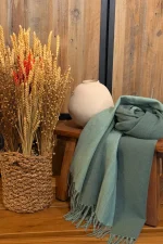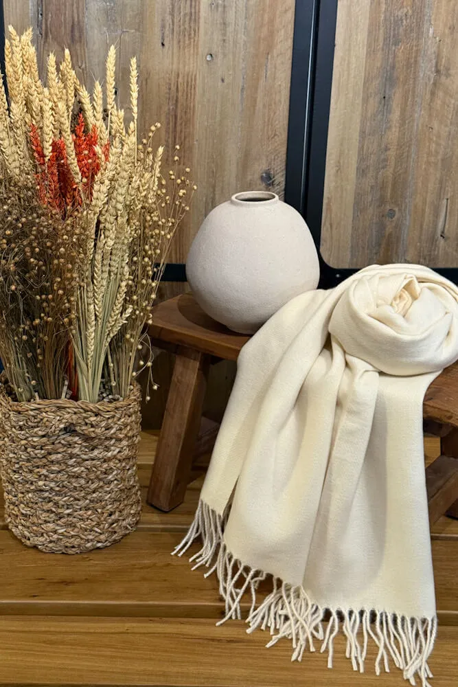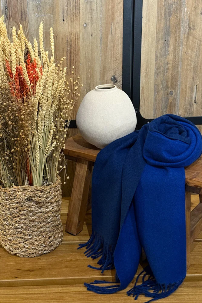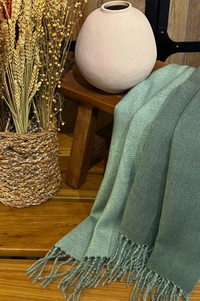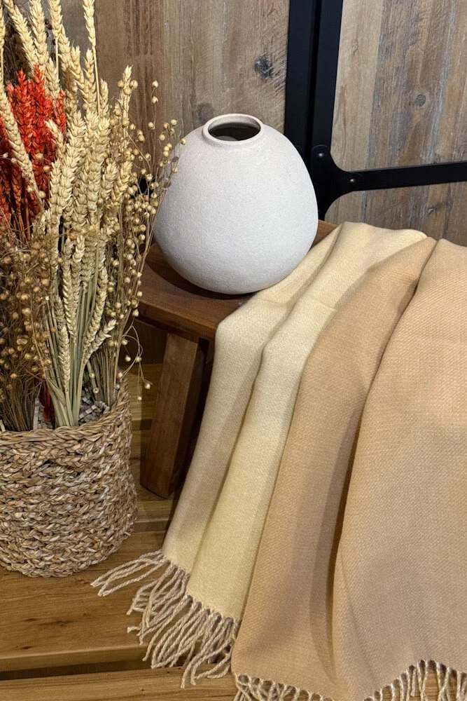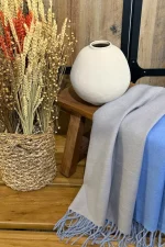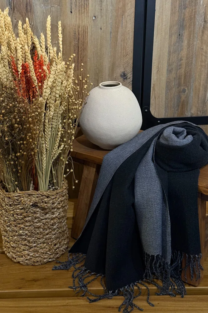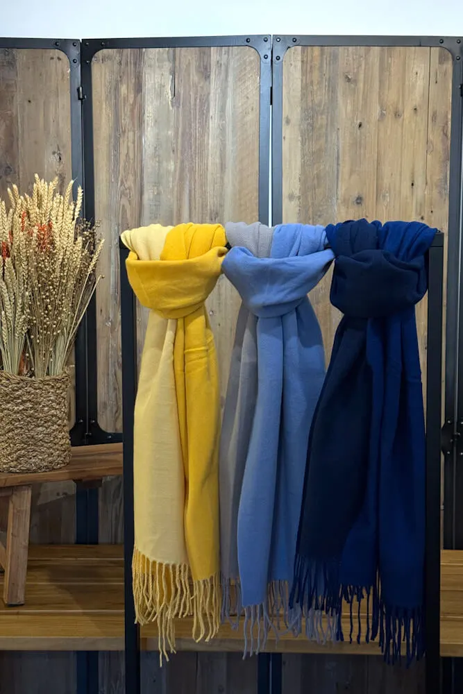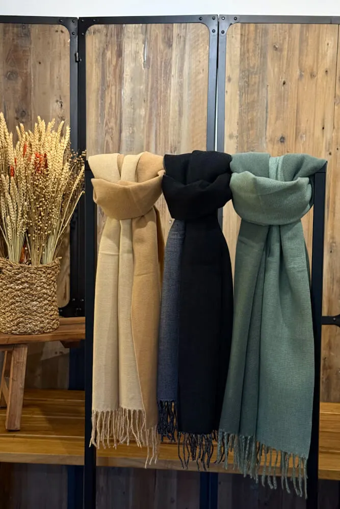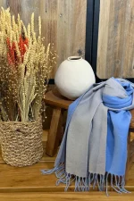 Fular de doble cara en tonos combinados. Tejido de tacto suave. Flecos en los extremos.